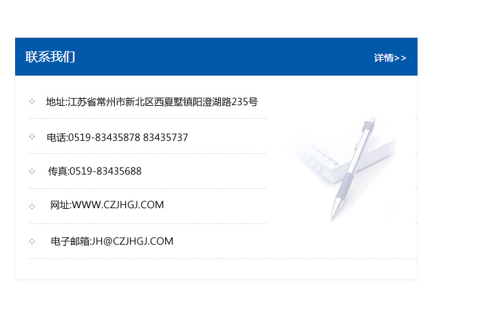 地址:常州市新北區友邦商務大廈1幢16、17層  電話:0519-85101652  傳真:0519-85112595  郵編:213022  網址:www_cz-jiayue_cn.focusep.com  郵箱:xiajifengaa@163.com
